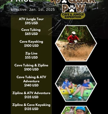 Jaguar Paw Cave and Jungle Expeditions. welcome everyone to the country of BELIZE. We cater for Locals and Foreign Visitors. Jaguar Paw offers Cave Tubing Zipline ATV Maya Ruins Excursion. We have the lowest prices in the country.